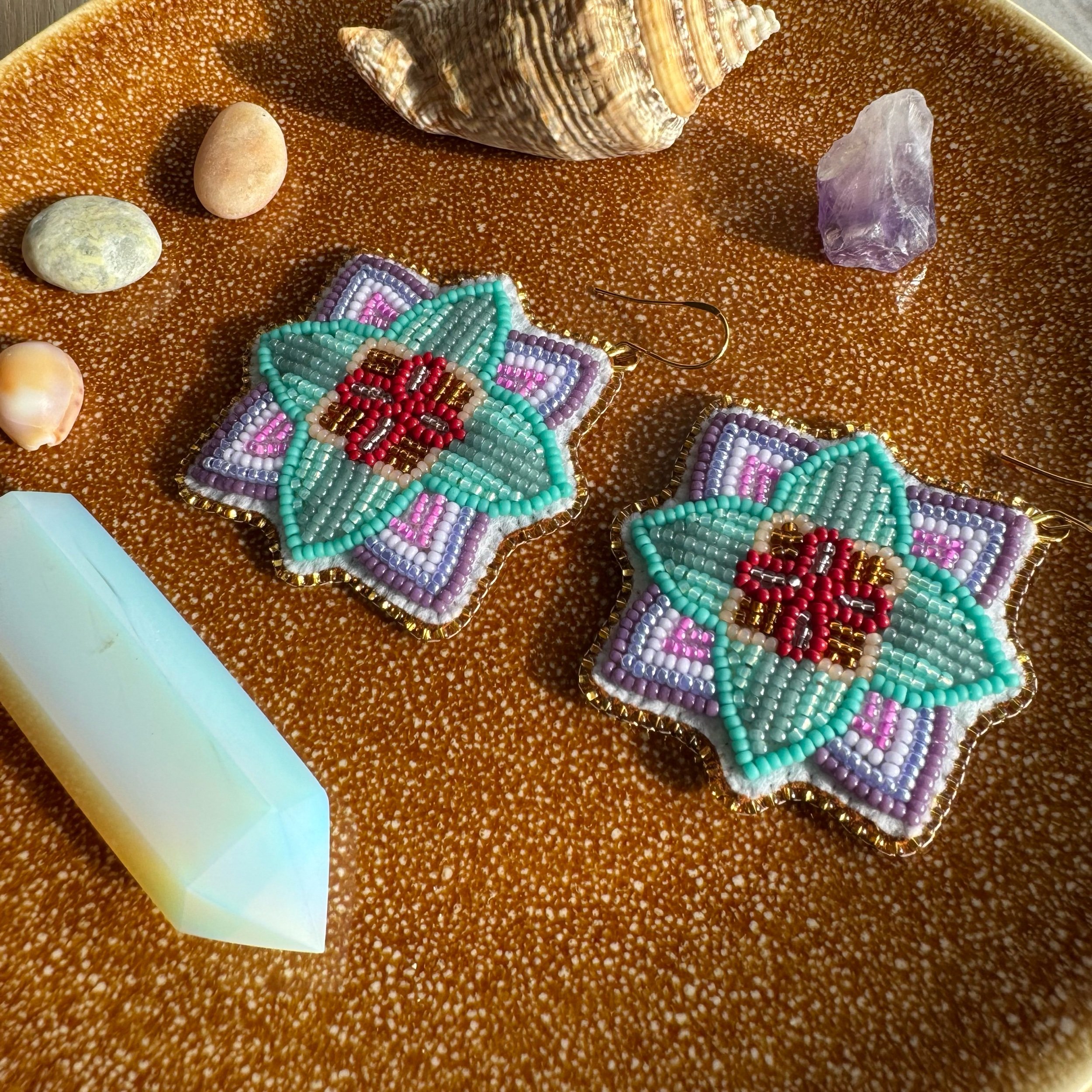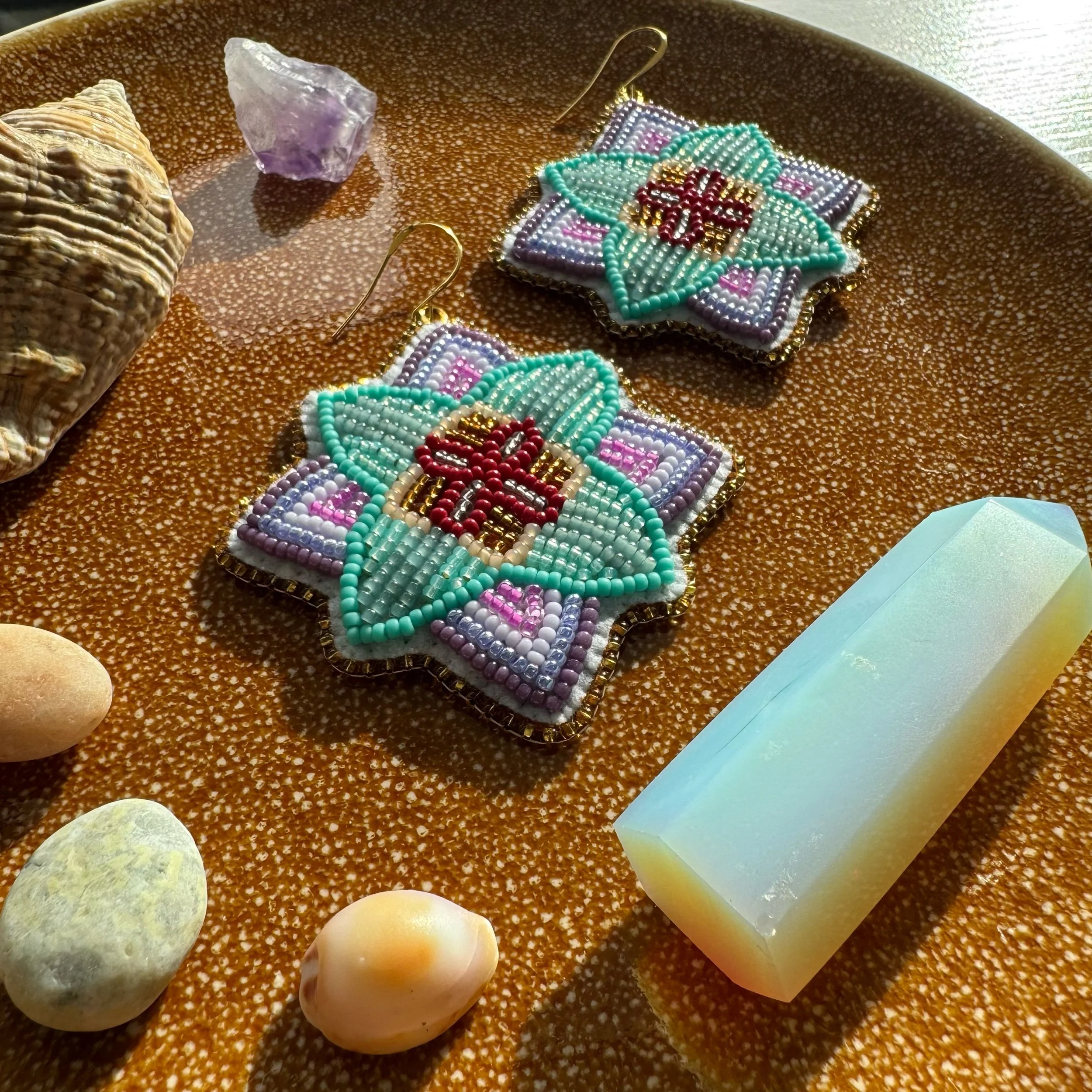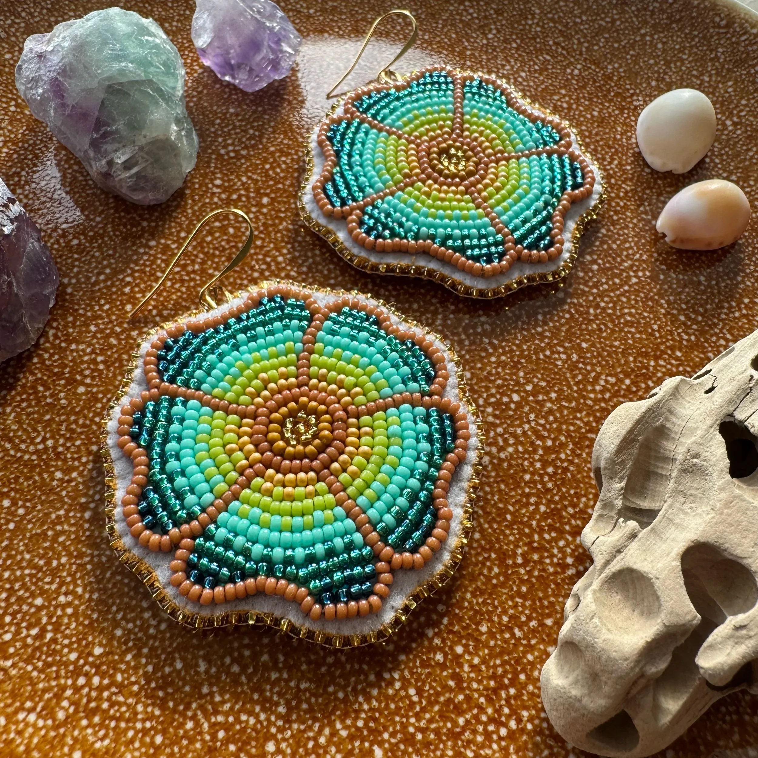 Categories: All Flat Stitch Fringe Earrings Shop Indigenous-Made Beadwork All | Flat Stitch | Fringe Earrings | Dark green flowers + peach gems $100.00 Sold Out Small orange flowers + blue gems $100.00 Sold Out Small purple flowers + pink hearts $100.00 Sold Out Small white flowers + red gems $100.00 Sold Out Purple and turquoise florals $200.00 Sold Out Small pink flowers + pink butterflies $100.00 Sold Out Green and turquoise florals $200.00 Sold Out