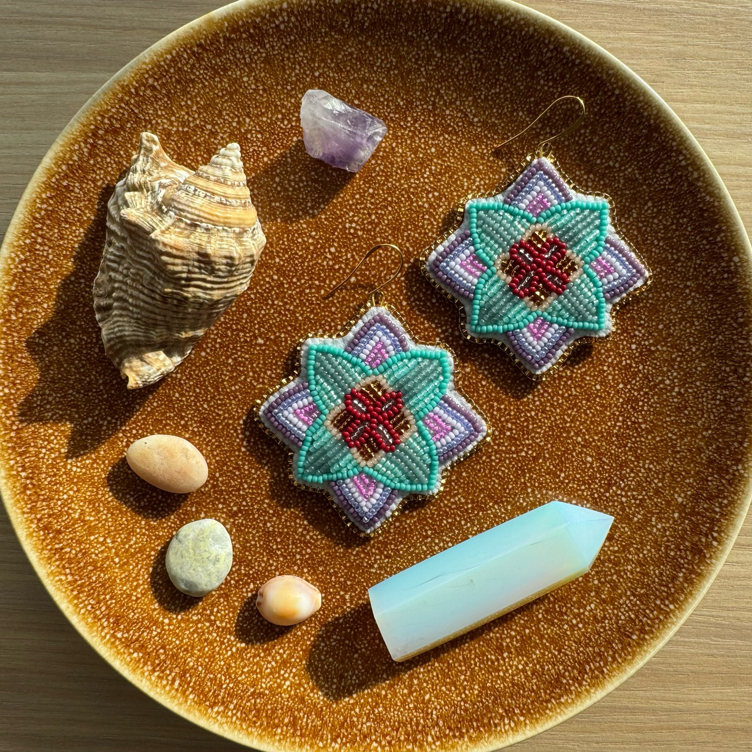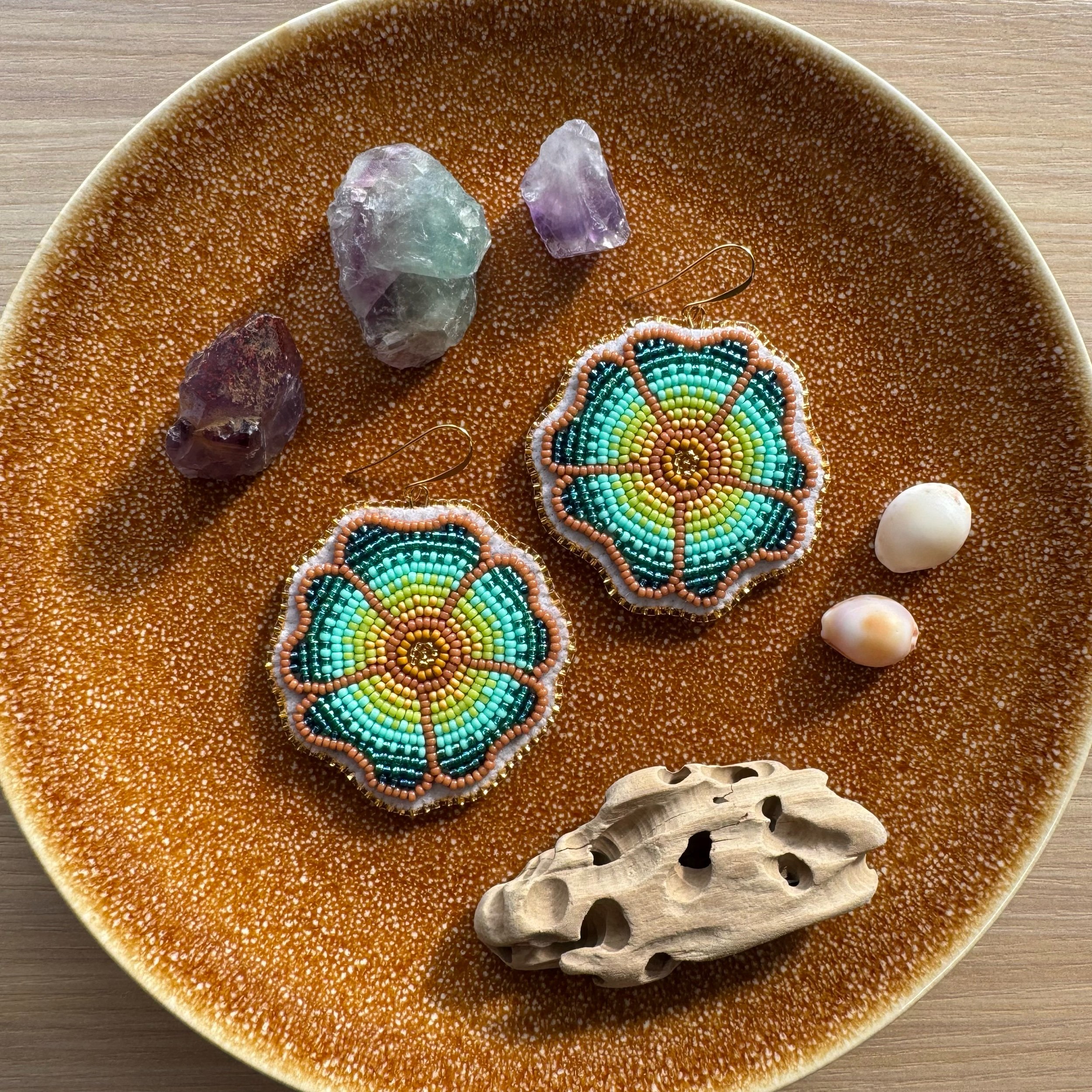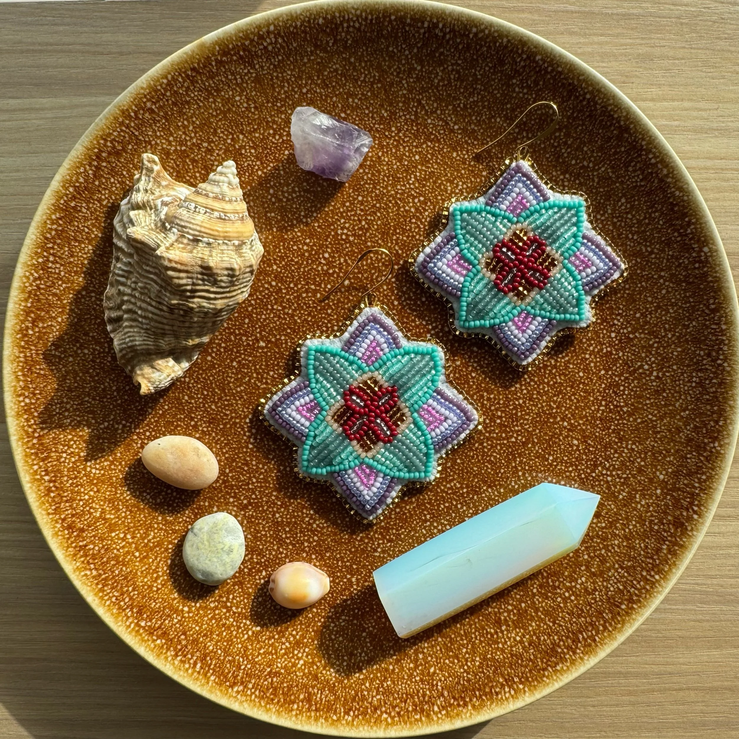 Categories: All Flat Stitch Fringe Earrings Shop Indigenous-Made Beadwork All | Flat Stitch | Fringe Earrings | Dark green flowers + peach gems $100.00 Sold Out Small orange flowers + blue gems $100.00 Sold Out Small purple flowers + pink hearts $100.00 Sold Out Small white flowers + red gems $100.00 Sold Out Purple and turquoise florals $200.00 Sold Out Small pink flowers + pink butterflies $100.00 Sold Out Green and turquoise florals $200.00 Sold Out