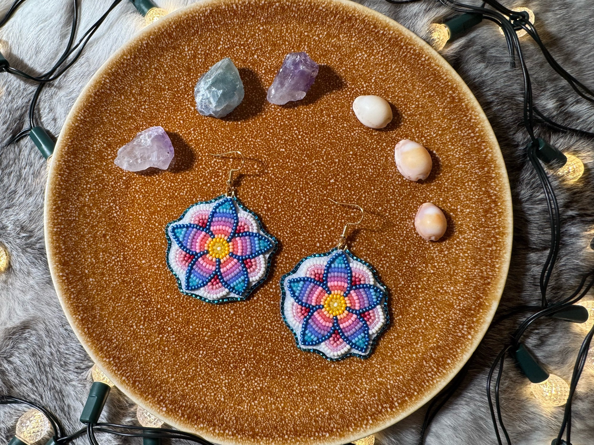 Shop Indigenous-Made Beadwork Categories: All Flat Stitch Fringe Earrings Shop Indigenous-Made Beadwork All | Flat Stitch | Fringe Earrings | Summer florals flat stitch $200.00 Dark green flowers + peach gems $100.00 Sold Out Small orange flowers + blue gems $100.00 Sold Out Small purple flowers + pink hearts $100.00 Sold Out Small white flowers + red gems $100.00 Sold Out Purple and turquoise florals $200.00 Sold Out Small pink flowers + pink butterflies $100.00 Sold Out Green and turquoise florals $200.00 Sold Out